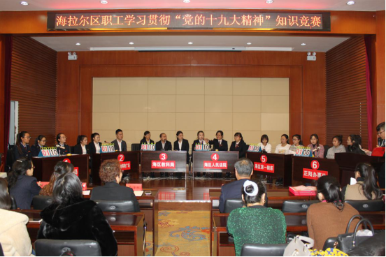 12月1日,呼伦贝尔市海拉尔区直属机关工委与海拉尔区总工会联合举办海拉尔区职工学习贯彻党的十九大精神知识竞赛。