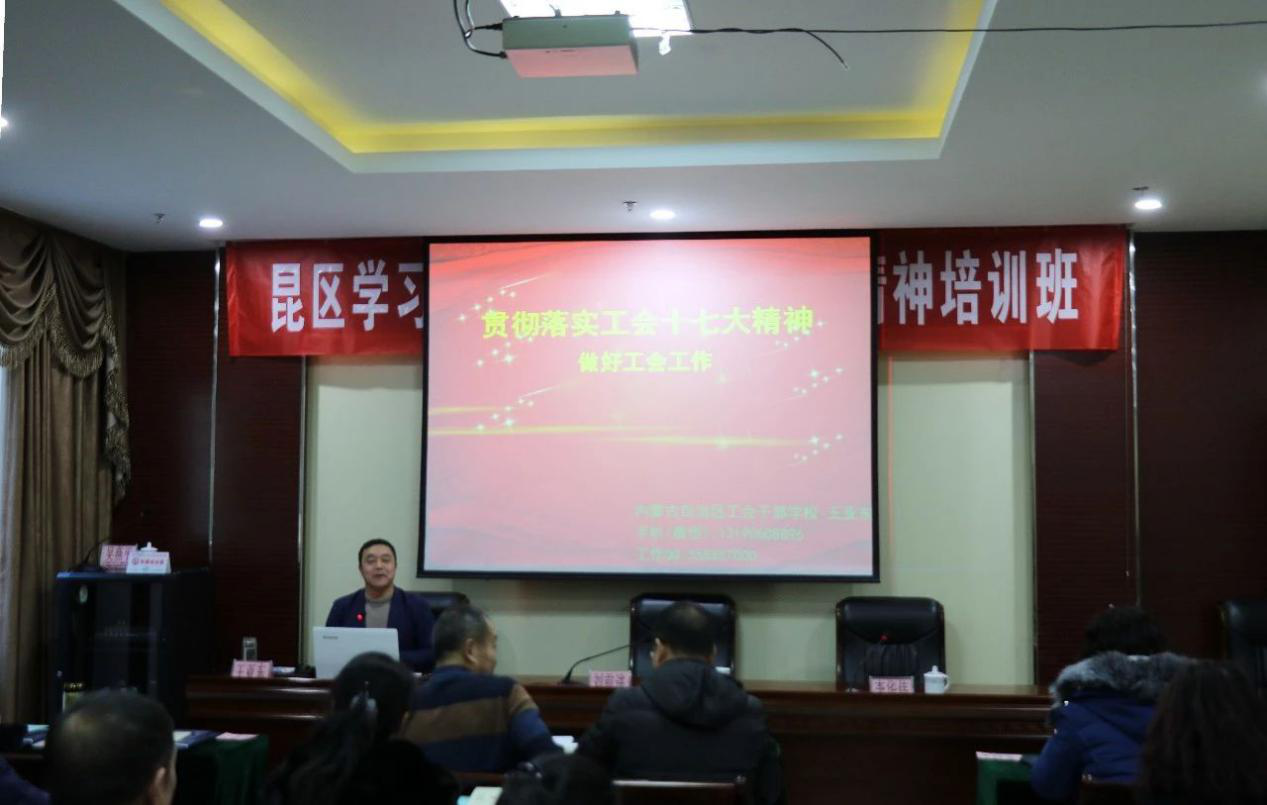 12月13日,包头市昆区学习贯彻中国工会十七大精神培训班开班。昆区人大常委会副主任、总工会主席刘前进出席开班典礼并作动员讲话,全区70多位基层工会主席、工会干部参加了培训。