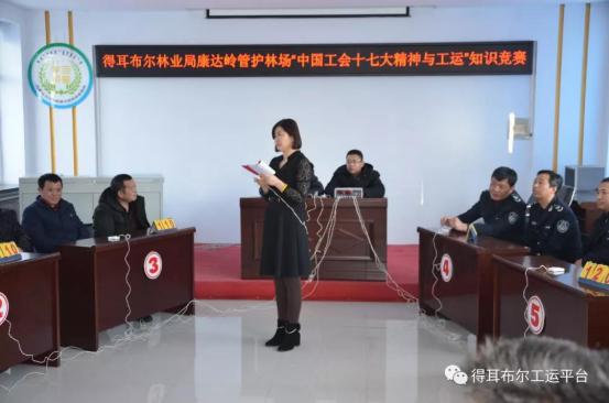 1月23日,得耳布尔林业局康达岭管护林场举办中国工会十七大精神与工运知识竞赛。林业局工会、林业局党委宣传部、精神文明办有关领导观看竞赛,来自康达岭管护林场的6支代表队的18名职工参加竞赛。