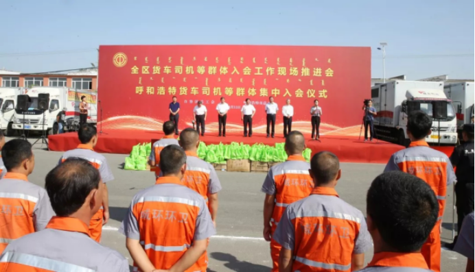 内蒙古自治区总工会在呼和浩特举行货车司机等群体集中入会仪式