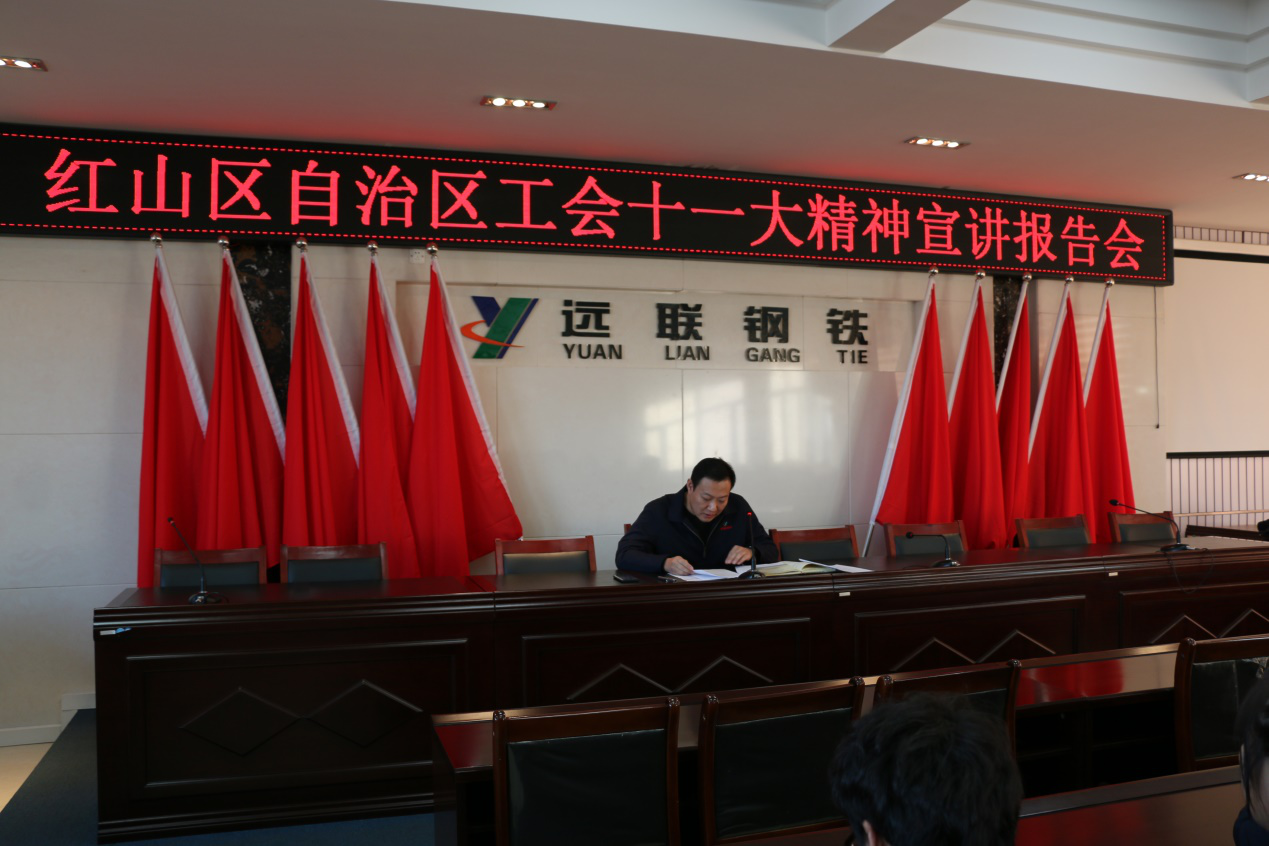 在赤峰远联钢铁有限责任公司工会召开自治区工会十一大精神宣讲报告会