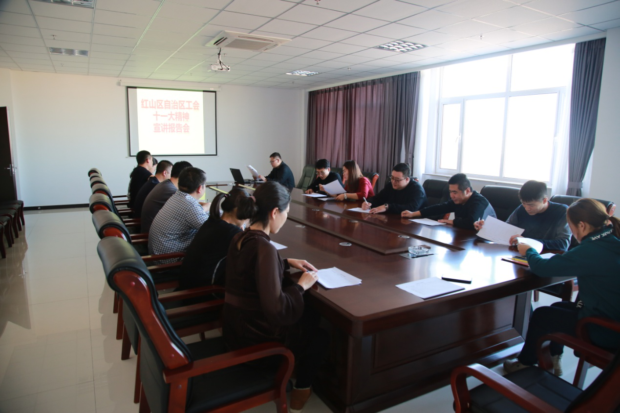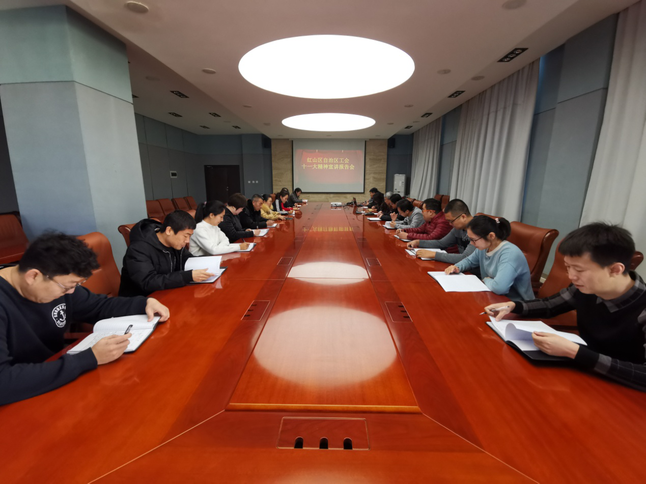 在红山绿色食品产业园管委会工会联合会召开自治区工会十一大精神宣讲报告会