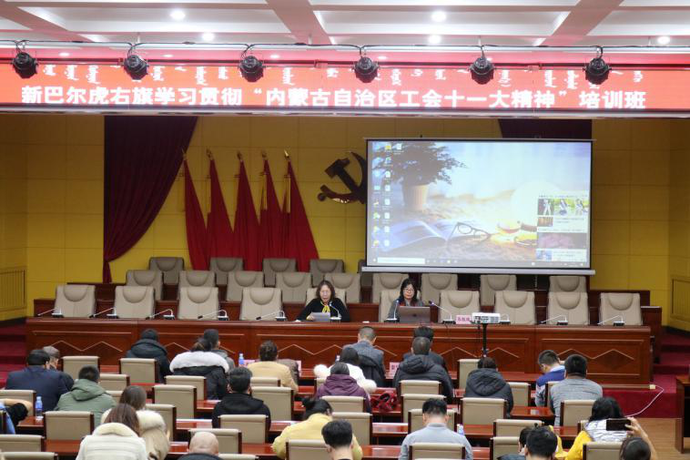 12月9日,新巴尔虎右旗总工会举办学习贯彻自治区工会十一大精神培训班,邀请呼伦贝尔市总工会干校教师授课,全旗各基层工会干部100余人参加培训,旗总工会负责人主持培训。