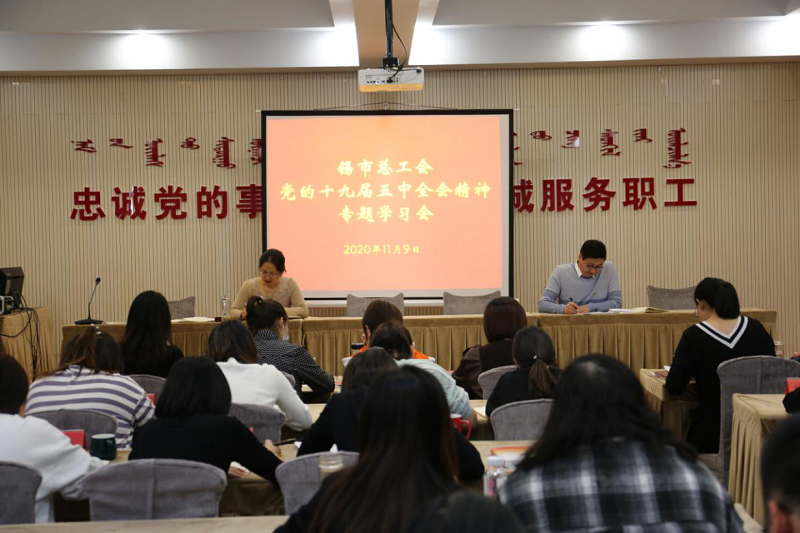 11月9日,锡林浩特市总工会召开全体干部职工会议,专题学习党的十九届五中全会精神。