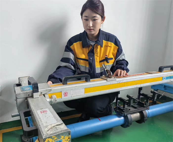 随着薛娇业务理论知识不断丰富,实作技能更加娴熟,2019年8月车间组建检查工区时,薛娇被选拔为班组女职工的“领头雁”。检查工区担负着京包线上下行共120.48公里正线和11组道岔设备检查任务,由于管内为160km/h速度客运线路,检查工作全部在夜晚进行。客车运行速度快,线路质检技术指标要求高,细微病害就有造成列车晃车乃至脱轨的可能,加之夜间光线不足,对线路质检人员的视力、精力和业务能力要求极其苛刻。