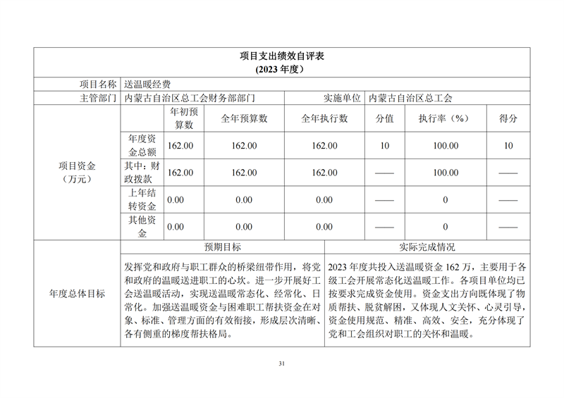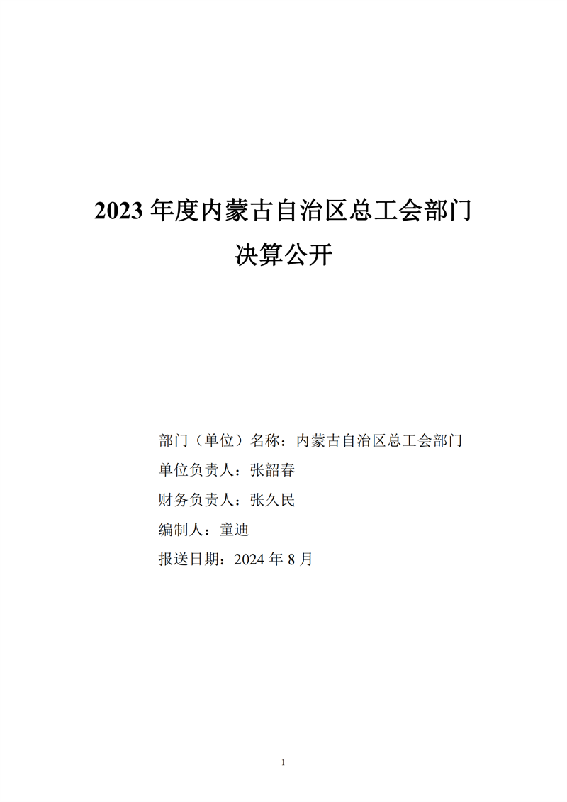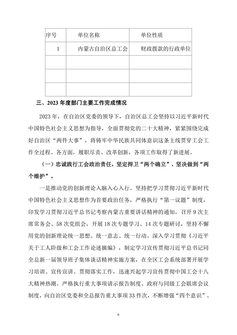 2023年度内蒙古自治区总工会部门决算公开