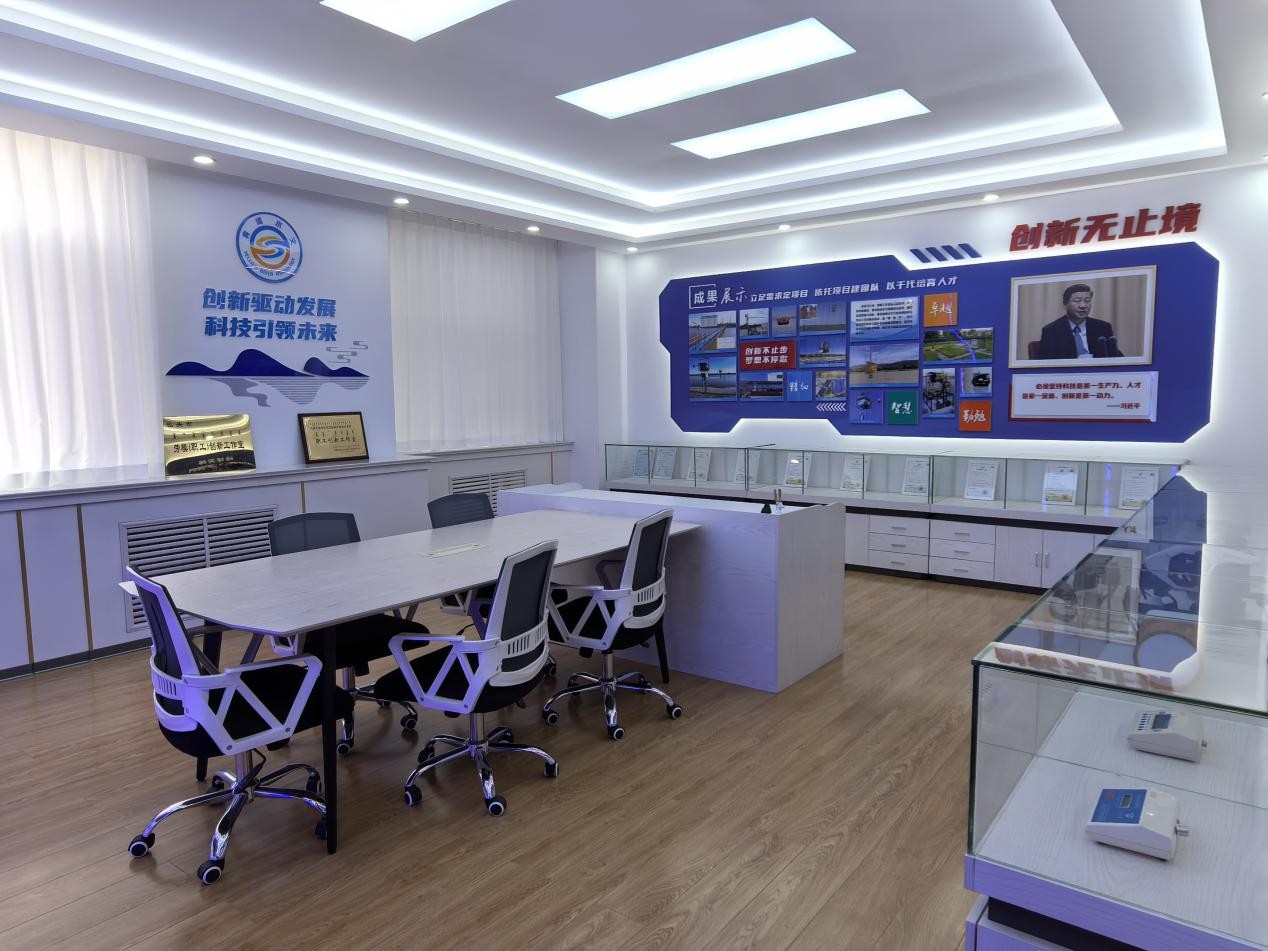 “创新驱动发展 科技引领未来””——踏入工作室,首先映入眼帘的是“黄河水文”LOGGO标识之下的十字标语,展示着宁蒙水文局对科技创新工作的重视与期许。