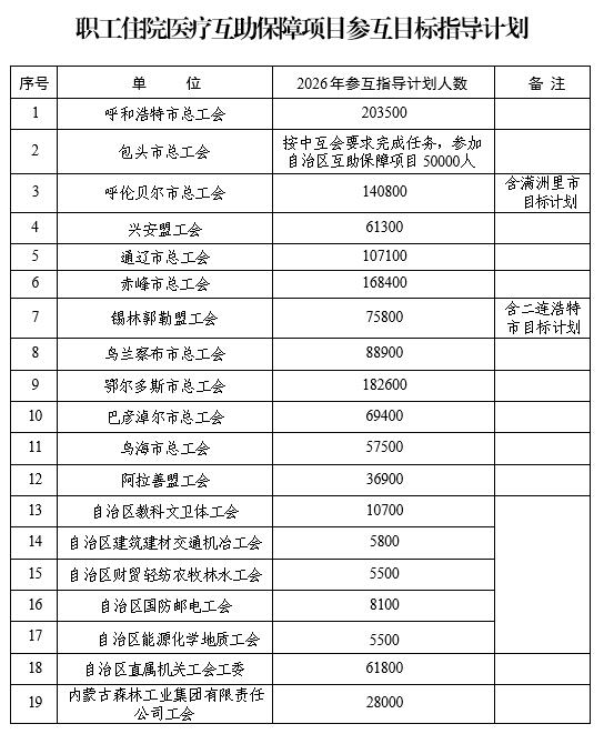 为深入学习贯彻习近平新时代中国特色社会主义思想,始终坚持竭诚服务职工群众的鲜明导向,认真落实自治区总工会党组对职工互助保障工作的各项要求,不断推进全区职工互助保障工作扩面提质,继续做大做优职工住院医疗互助保障项目和女性馨康互助保障项目,2026年度职工互助保障项目在2025年度基础上进一步优化升级,于2025年7月开始接受办理。现就有关事项通知如下。