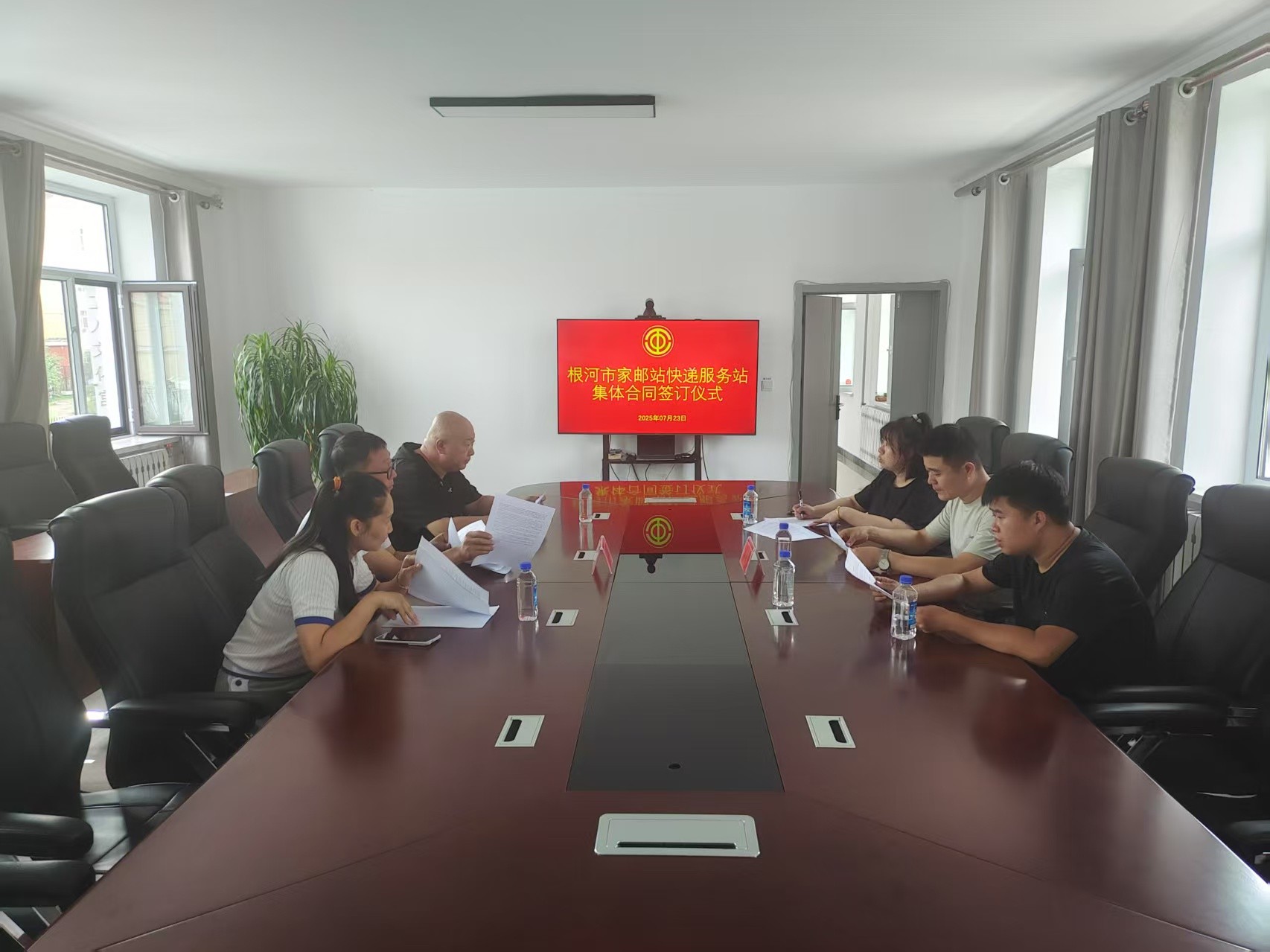 7月23日,根河市家邮站快递服务站在根河市总工会举行集体合同签订仪式。