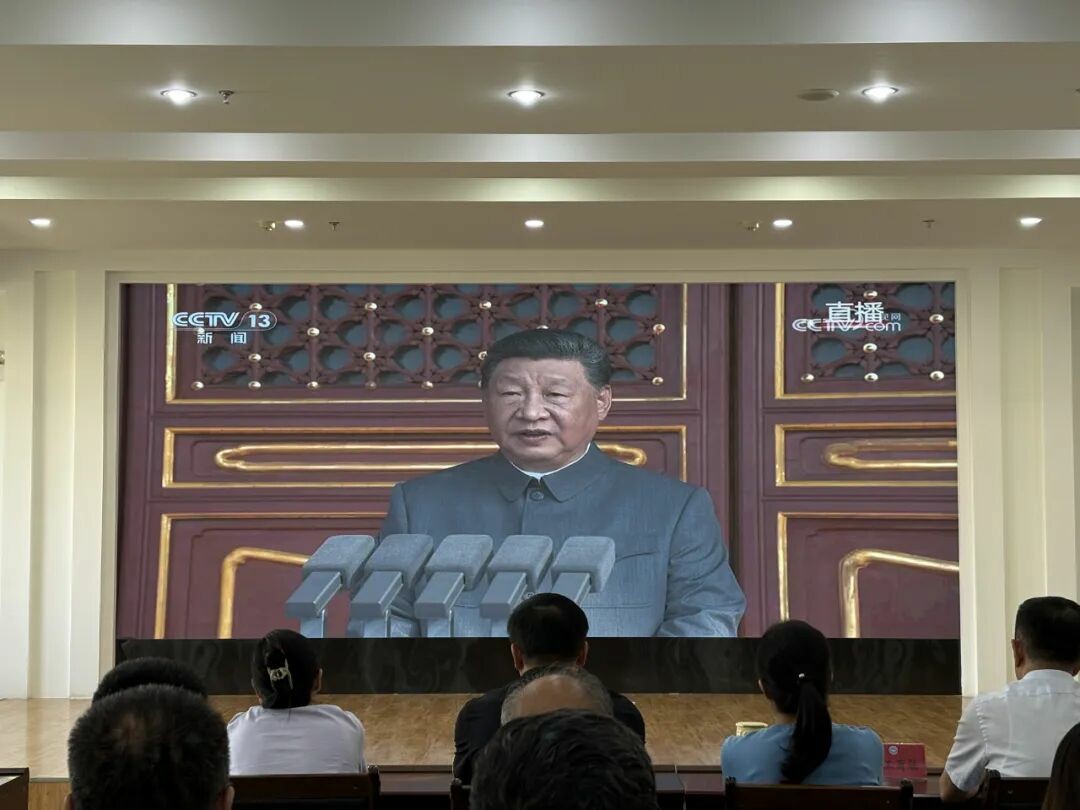 观看过程中,全体党员干部全神贯注,心情随着阅兵式的推进而激动不已。整齐划一的方阵、先进精良的装备、昂扬奋进的精神风貌,让党员们深受震撼。受阅官兵英姿飒爽、士气高昂,展现了人民军队的崭新风貌和捍卫国家主权、安全、发展利益的坚定决心。