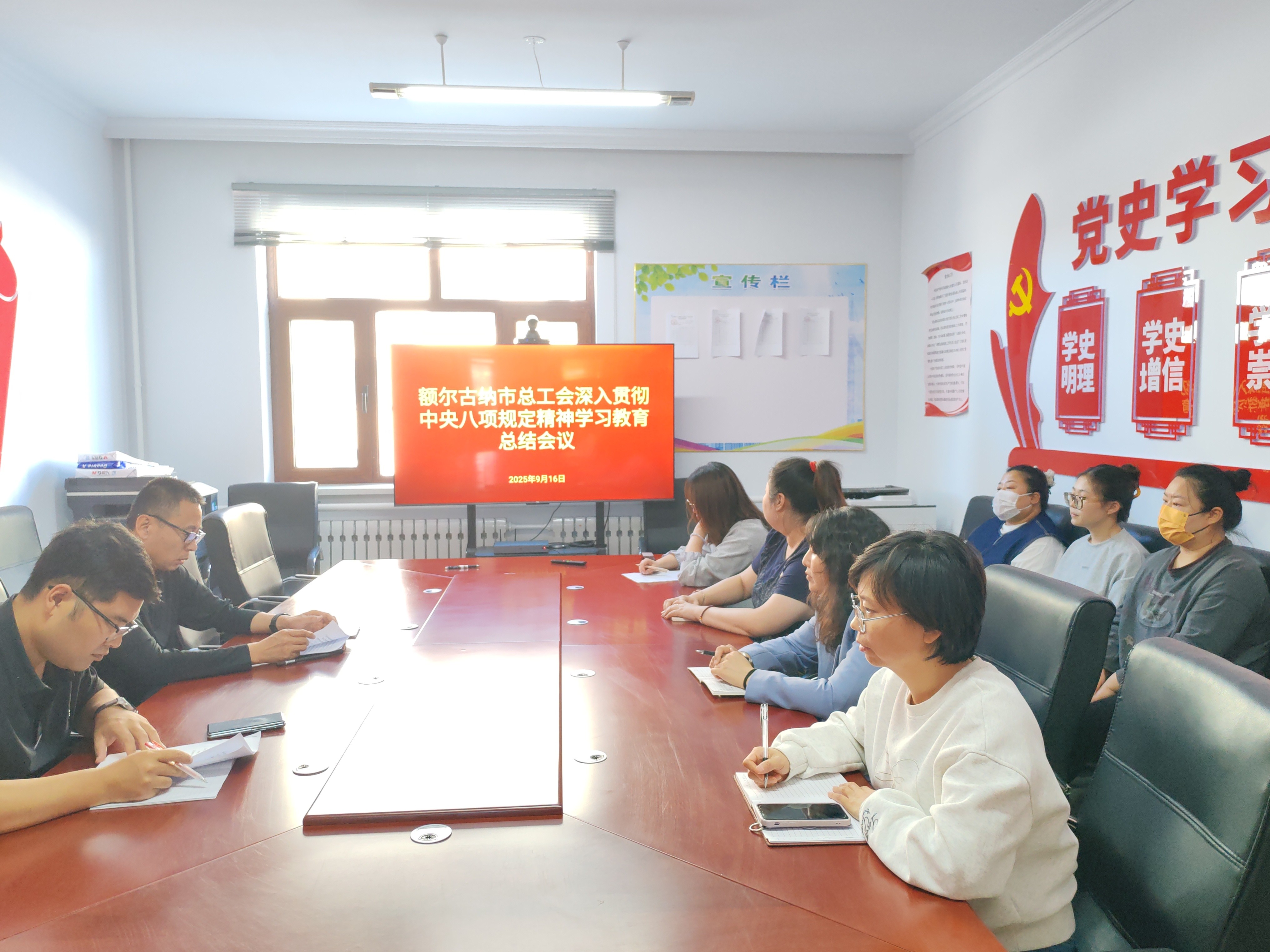 9月16日下午,额尔古纳市总工会召开深入贯彻中央八项规定精神学习教育总结会议,全体党员干部参加。