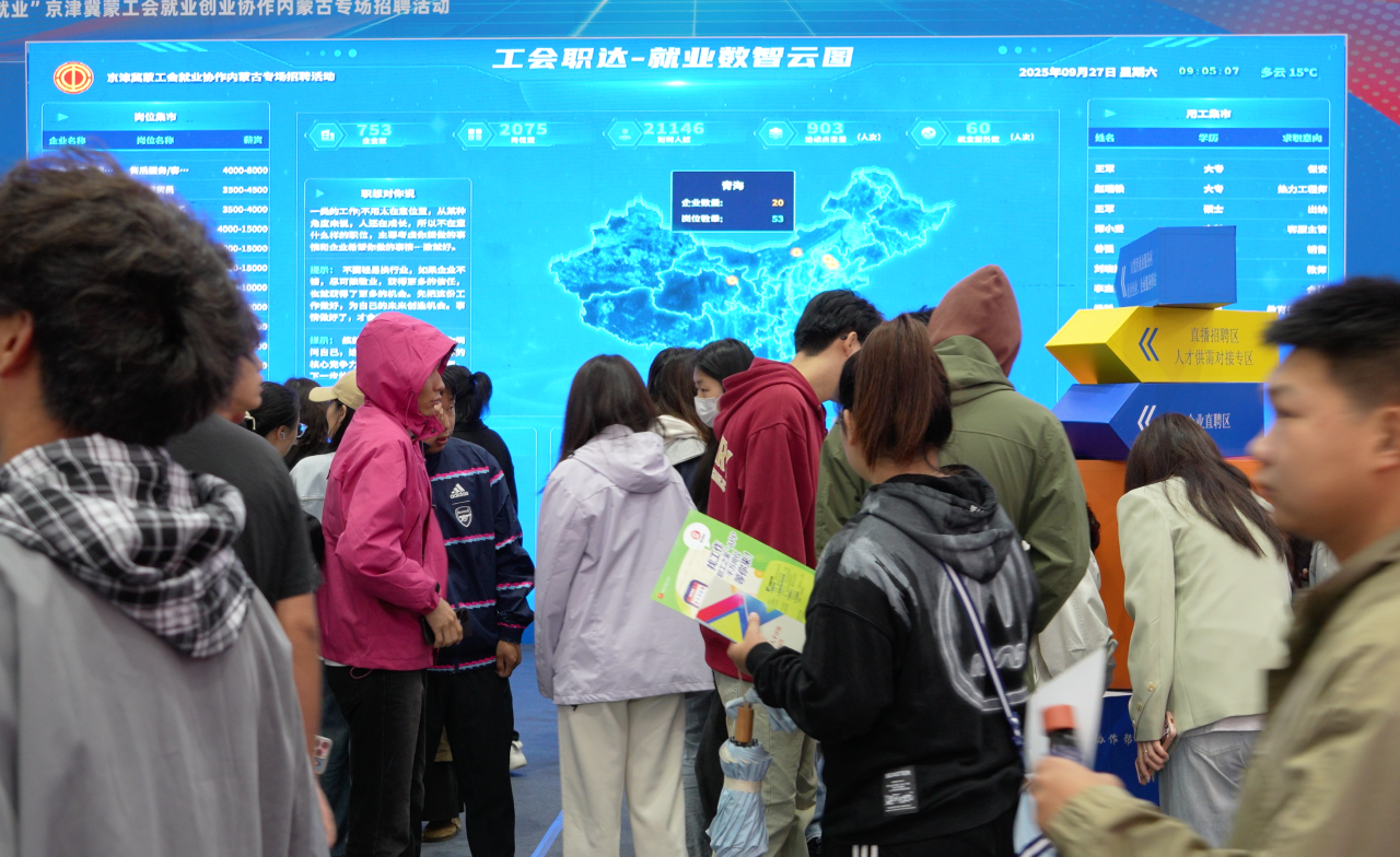 9月27日,由内蒙古自治区总工会携手北京市、天津市、河北省总工会,以及内蒙古自治区教育厅、人社厅共同主办的2025年“工会帮就业”京津冀蒙工会就业创业协作内蒙古专场招聘活动在内蒙古鸿德文理学院举行。活动现场人流如织,深受各类求职者的欢迎。